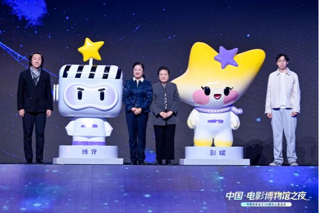 本次活动的一大亮点,是在中国电影博物馆落成20周年之际,中国电影博物馆IP形象——两个可爱的卡通玩偶“影妮”与“博仔”正式亮相,这是由中国电影博物馆与北京印刷学院设计与艺术学院团队密切合作,历时近一年精心打造的。通过人格化的塑造手法,将博物馆建筑外观、电影文化元素与数字视觉语言有机结合,打造出兼具艺术性、科技感与年轻态的IP形象。其中,“影妮”以博物馆建筑外观中的星形为核心意象,胶片围巾寓意着中国电影历史的记录与延续;“博仔”则以电影拍摄场记板为头部造型,是电影技术与艺术融合的象征。近期,两个可爱的卡通形象玩偶将正式在中国电影博物馆与广大观众见面。
