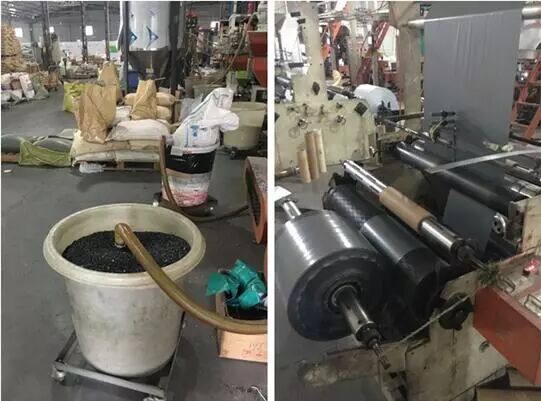 在一家中等规模的包装加工厂,记者见到了快递袋的生产过程。5台机器,同时工作,一天可以生产十几吨。在机器旁边,则堆放着一大批原料,部分原料上还写着"不要用"三个字。当记者询问这些原料来源的时候,工作人员则略显神秘:"这些原料来自天南海北,都是老板的老朋友,我们也不知道具体情况。"