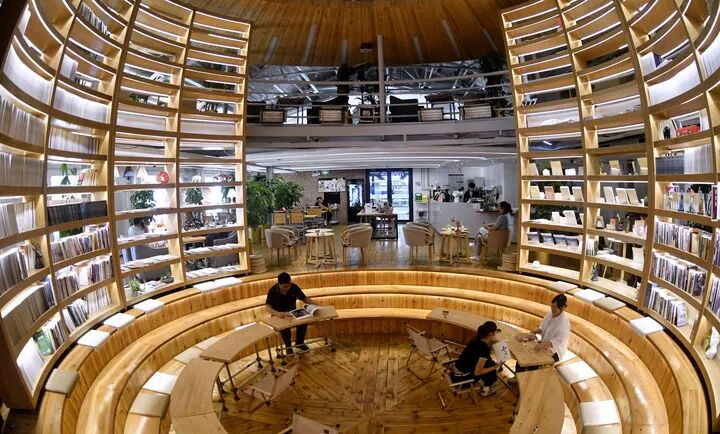 2025年9月19日,北京纪家庙双创产业园内为青年人提供的集读书、简餐、会谈为一体的拓普原素咖啡馆。新华社记者 李欣 摄