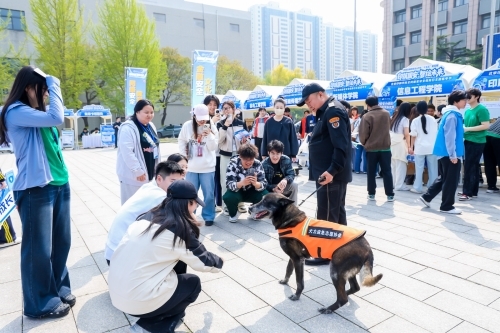 此外,现场还融入了丰富的文化元素。学校举办了新时代大学生国家安全主题海报设计大赛,征集的原创作品在现场展出,通过视觉艺术传递家国情怀。大兴区警犬搜捕队、校国旗仪仗队及校卫队的定点展演,更以专业的技能展示和庄重的仪式感,营造了凝心聚力护安全的浓厚氛围。