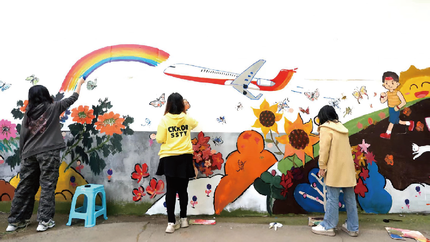 “看着斑驳的墙面变成色彩斑斓的文化长廊,村民们的笑容就是最大的肯定!”在大兴区鲍家铺村墙绘项目结束后,学院本科生党支部党员杨秉达自豪地说。起初,因不了解乡村文化,设计团队无从下笔。学院党委联合村党支部开展党建联建,村里的党员干部带领师生走访老住户、挖掘历史故事,专业教师现场指导提炼核心元素,最终完成了墙绘作品,让乡村面貌为之一新。