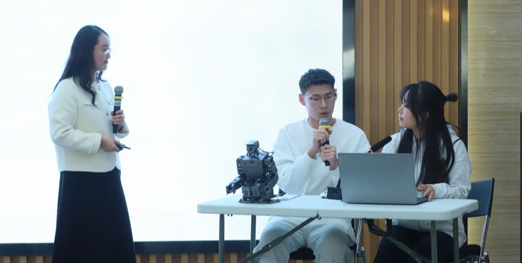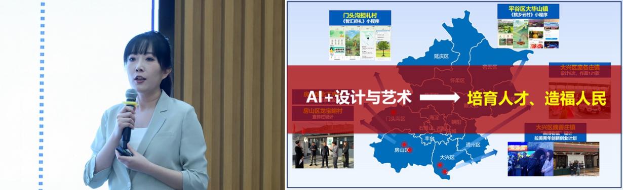 在数智赋能教学、实践案例展示中,信息工程学院教师林立霞进行了“AI赋能的《人工智能导论》课程师生机三元交互教学演示”。新媒体学院教师王丹蕊介绍了“AI赋能《数字影像视听语言》课程教育教学改革创新”成果。新闻传播学院本科生陈子谦、乔广宇以《校媒双师搭平台,AI助学结硕果》为题,分享了在学校与北京日报社共建的产学研合作基地由专业教师和媒体老师共同指导完成了系列AI作品的实践经历,充分展示了北印师生在数智化教育教学改革浪潮中,主动探索、积极实践的奋进身姿。