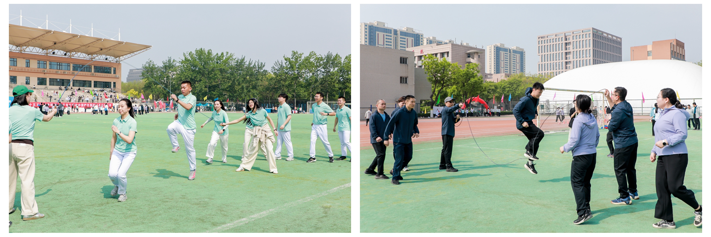4月22日、24日,北京印刷学院第二十一届教职工趣味运动会在校本部体育场举行,个人项目包括实心球掷远、立定跳远、4×25米折返跑,集体项目包括“疯狂毛毛虫”“击鼓颠球”“8字长绳”,数百名教职工参与活动。