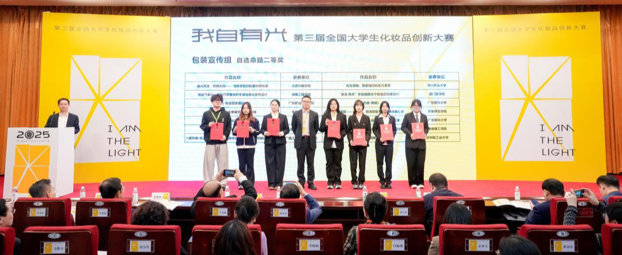 近日,由教育部高等学校轻工类专业教学指导委员会指导,中国日用化工协会、北京工商大学主办的第三届全国大学生化妆品创新大赛全国总决赛在暨南大学举行。印刷与包装工程学院8支团队从全国600余支参赛队伍中脱颖而出,共斩获全国总决赛二等奖2项、三等奖6项。