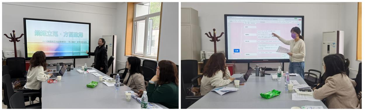 4月18日,教师发展中心带领两位教师前往北京邮电大学,特邀全国高校教师教学创新大赛一等奖获得者、教育部思政教学名师北京邮电大学教师发展中心主任张钫炜教授担任指导专家。张钫炜严格按照赛事流程,分别听取两位教师的12分钟教学设计创新汇报,随后开展8分钟的提问交流。她结合教学大纲与教学实践,从内容逻辑、语言节奏、时间把控、课件设计等细节入手,逐一点评,并在汇报注意事项、课程思政融入角度及方式等多个方面提出具体建议。同时,她帮助两位教师梳理各自汇报的亮点,指导她们在有限时间内抓住评委注意力、凸显教学创新的独特性,从而有效帮助教师提前熟悉评委可能关注的焦点,做到临危不乱、对答有据。