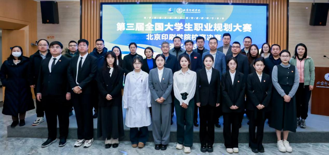 为深入贯彻党中央、国务院关于促进高质量充分就业的决策部署,落实2026届全国普通高校毕业生就业创业工作会议精神,12月22日,学校以“筑梦青春志在四方 规划启航职引未来”为主题在新创大厦学术交流中心举行第三届全国大学生职业规划大赛校赛决赛。学校党委副书记白莽,党委常委、副院长刘益,研究生院、教务处、学工部相关负责人,各二级学院负责人、辅导员、获奖学生以及北京金印联国际供应链管理有限公司、南海出版公司、北京人形机器人创新中心有限公司、北京盛通印刷股份有限公司、北京国人通教育科技有限公司、北京三月雨文化传播有限责任公司、优包(北京)科技有限公司等企业评委参加活动。决赛赛前动员和颁奖仪式由学工部部长朱磊主持。