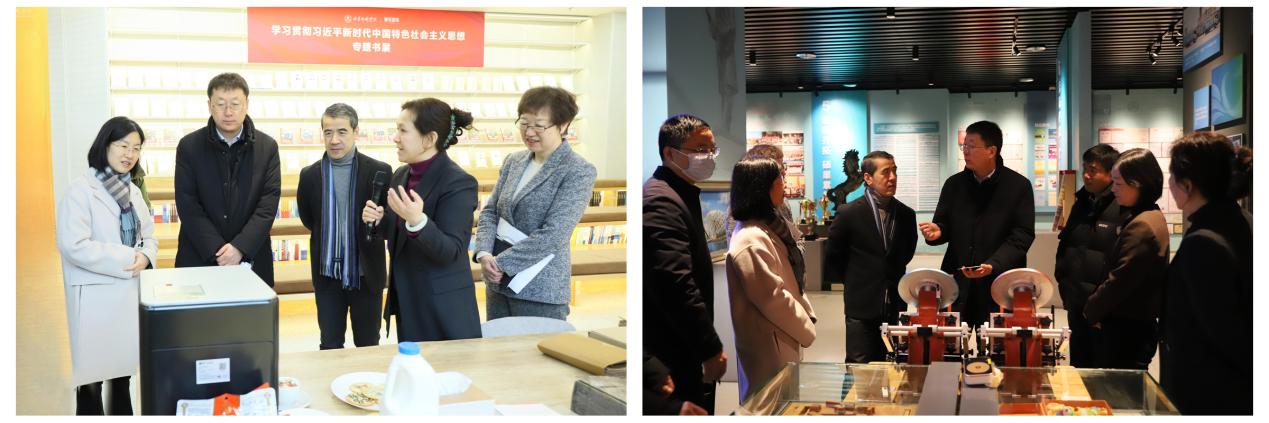 李卫华一行实地参观了校史馆、毕昇书坊,深入了解学校办学历史和“读好书、编好书、印好书、传好书”的四书育人特色,并重点了解学校文化创意产业园区建设运营相关情况。随后学校作为文化产业园区代表单位参与了相关座谈。