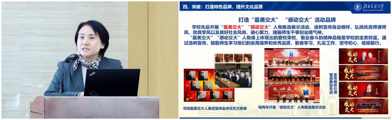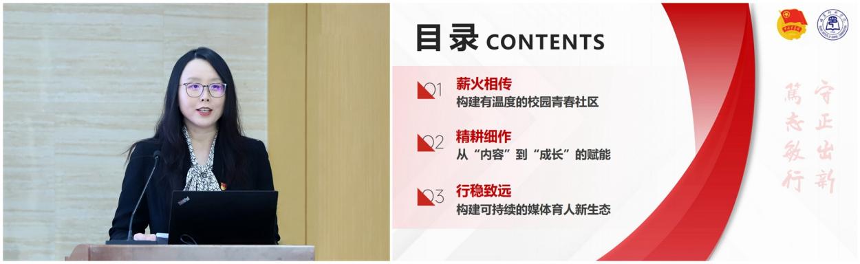 在学习交流环节,蓝晓霞以《新时代大学文化建设的价值深化与实践创新》为题,分享北京交通大学在文化育人、品牌塑造方面的探索与实践。钟嶷盛作《围绕中心服务大局 为学校高质量发展做好宣传舆论支撑》分享,介绍北京工业大学凝聚师生合力,构建“三融三提”宣传工作格局的做法和成效。付琳围绕《深入学习贯彻习近平文化思想 努力讲好守正创新的校园文化故事》主题,分享了首都经济贸易大学建设全国文明校园、展现时代精神的创新实践。