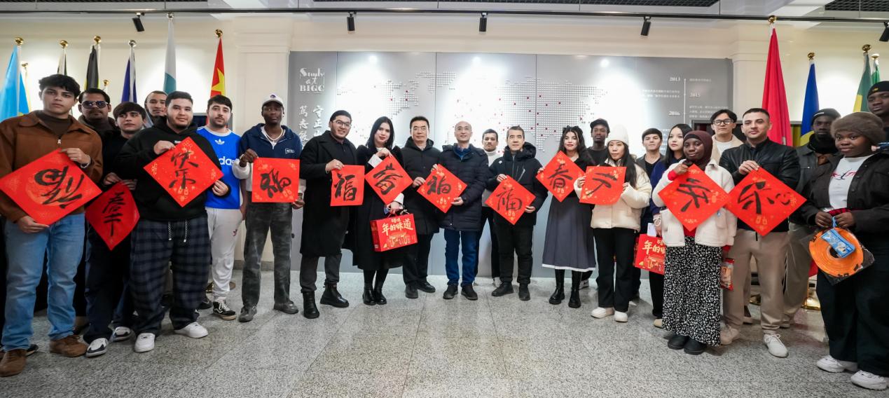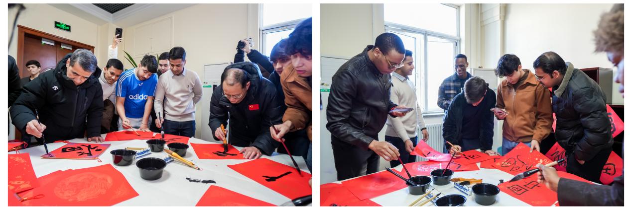 随后,校领导一行来到西校区国际教育学院,亲切慰问了正在参加国际学生新春游园会的留校国际学生。师生共同书写“福”字、同庆新春,现场洋溢着浓浓的中国年味。张鑫鼓励留学生们深入体验中华文化,努力学习,成为中外文化交流的友好使者。