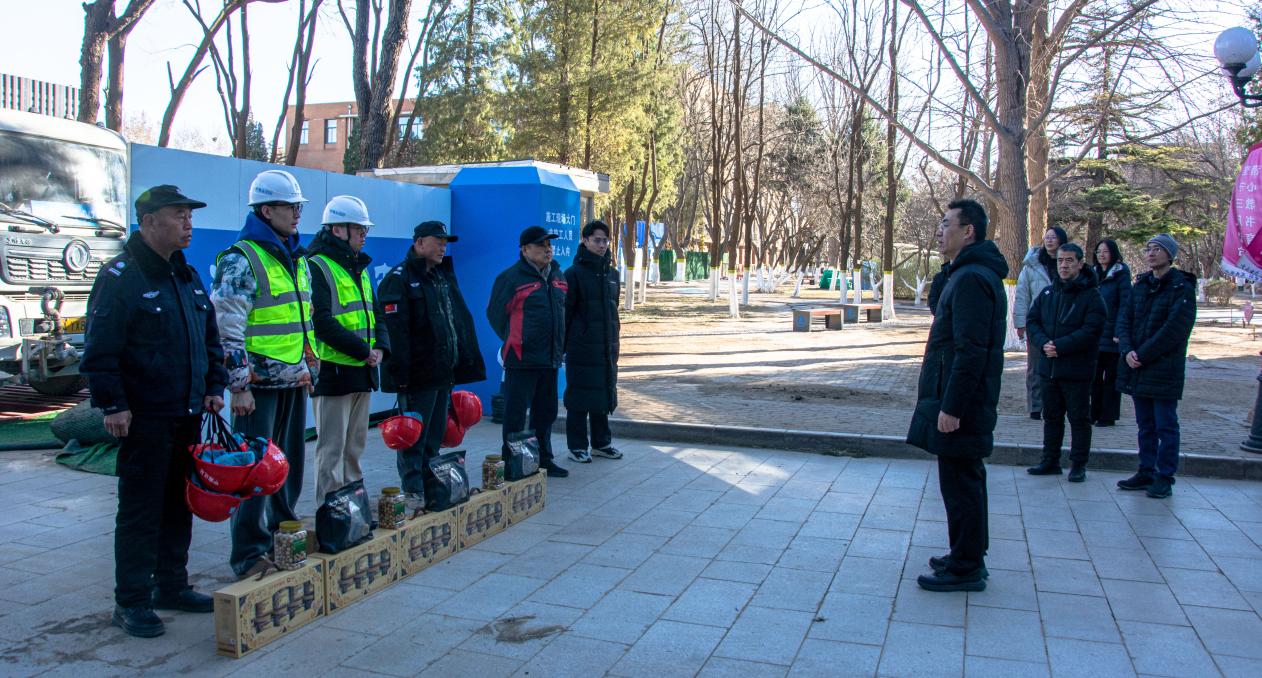 校领导一行还来到校本部在施项目工地,慰问值守在一线的建设者们。校领导走进施工现场,查看工程进展情况,认真听取关于项目节点计划、安全环保管控及春节服务保障工作安排。刘尊忠向一线建设者表示感谢,希望大家在特殊时期更要绷紧安全弦,确保节日工地安全。