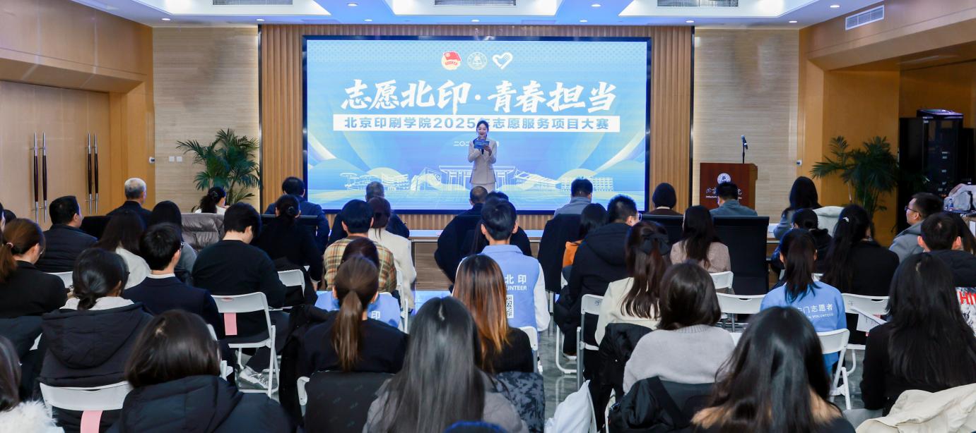 为深入学习贯彻习近平总书记关于青年工作的重要思想,贯彻落实习近平总书记给中国志愿服务联合会第三届会员代表大会的致信精神,充分展示学校近年来志愿服务育人成果,12月17日下午,“志愿北印・青春担当”北京印刷学院2025年志愿服务项目大赛在学术交流中心七会举行。大兴团区委副书记徐可,北京印刷学院党委书记张鑫,党委副书记白莽,党委常委、宣传部部长王新营,党委学工部、校团委负责人,各二级学院相关负责人与志愿服务项目团队代表齐聚现场,共话志愿担当。活动特别邀请北京志愿服务发展研究会副会长代恒猛、北京乐知社会组织能力促进中心主任黄冠华和北京市志愿服务联合会特聘专家罗永生担任评委,为项目发展精准赋能。