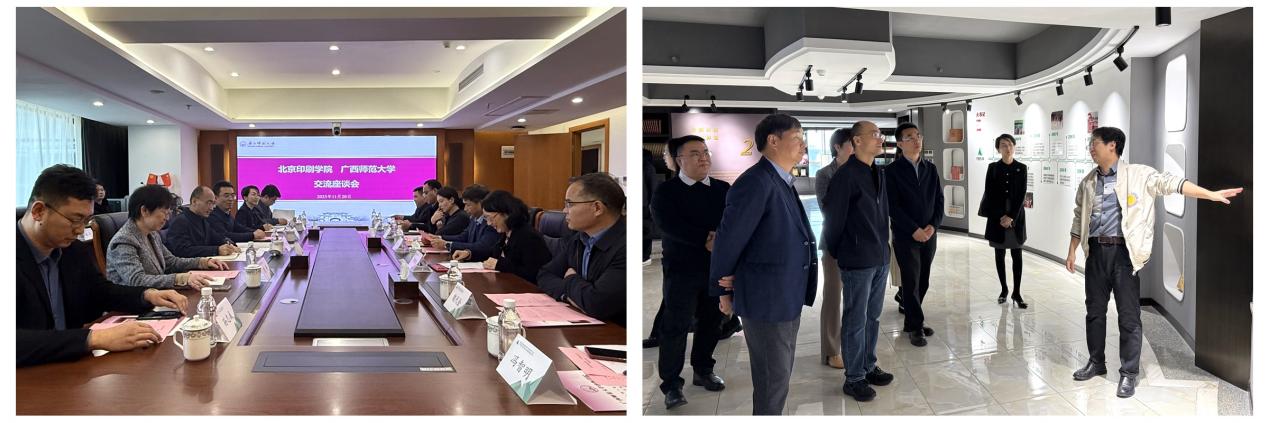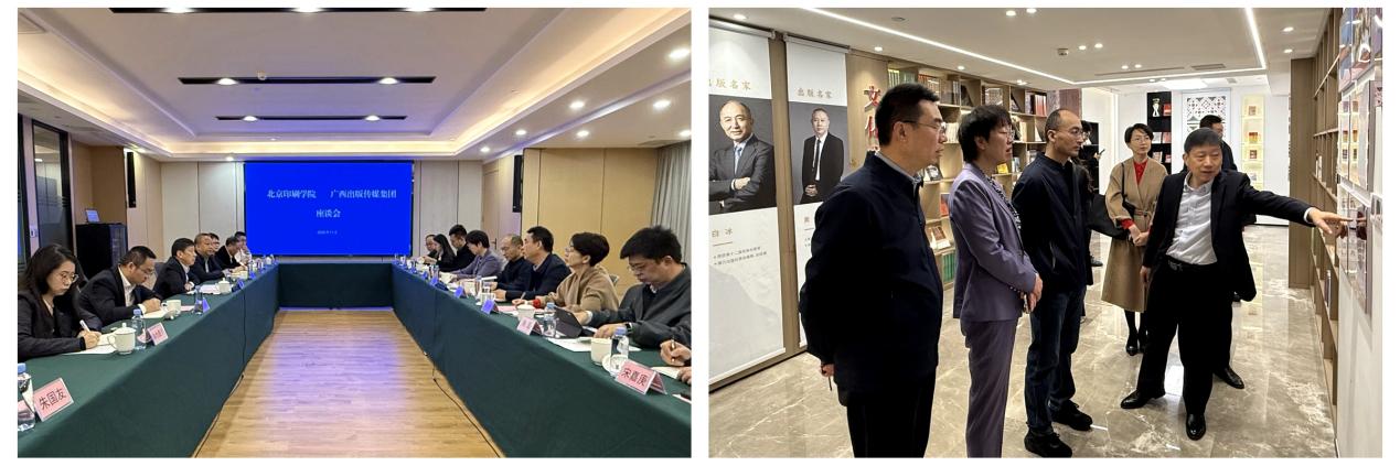 为深入贯彻落实党的二十届四中全会精神,聚焦高等教育协同发展、出版传媒行业转型升级、高素质应用型人才培养及产教融合平台建设等重点领域,充分发挥首都高校资源优势,服务西南地区出版印刷产业高质量发展,助力边疆民族地区文化事业和文化产业繁荣,11月20日至22日,学校党委书记张鑫带队赴广西桂林、南宁开展专题调研,先后走访广西师范大学、广西师范大学出版社集团、广西出版传媒集团、广西民族印刷包装集团、广西新闻出版技工学校、广西地质印刷有限公司等单位。学校党委常委、副院长刘尊忠,副院长陈丹一同参加。