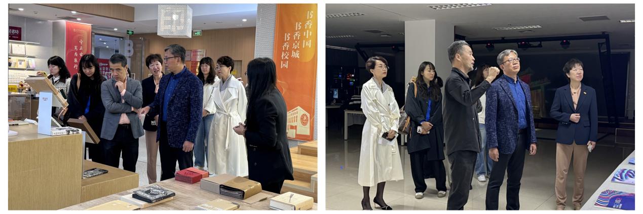 张弋辉一行先后参观了学校毕昇书坊、设计艺术学院出版物设计工作室、新媒体学院数字媒体实验室、北京印刷学院助力北京2022年冬奥会和冬残奥会设计主题展、艺术教育30年成果展及新闻传播学院毕设展等,了解学校专业优势与特色,全面感受学校深厚的文化底蕴与蓬勃的创新活力。