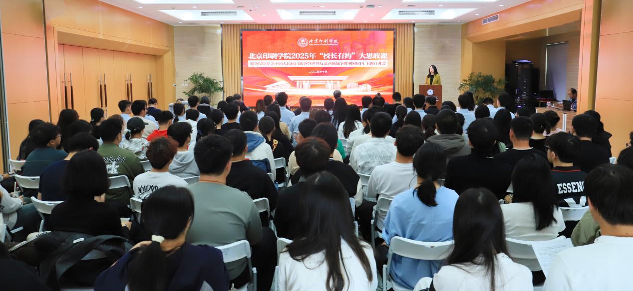 为深入学习习近平总书记在纪念中国人民抗日战争暨世界反法西斯战争胜利80周年大会上的重要讲话精神,传承弘扬伟大抗战精神,10月15日下午,“校长有约”大思政课——服务保障中国人民抗日战争暨世界反法西斯战争胜利80周年主题宣讲会在学术交流中心举办。学校党委副书记、院长田忠利,党委副书记白莽,党委宣传部、党委学工部、校团委、马克思主义学院相关负责人,各二级学院党委副书记,服务保障重大活动学生宣讲团成员,2025级新生代表参加活动。活动由校团委书记王昕主持。