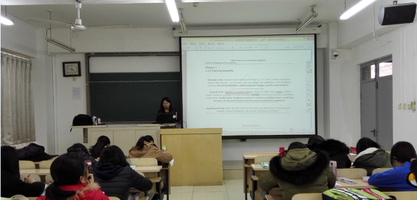 李维华介绍了ACCA班的筹备以及本学期课程安排情况。北印首届ACCA班招生10人,周末上课,共有14门课程,两门选修课,课程分为三个部分:基本会计原理;专业财会人员应具备的核心专业技能;培养学员以专业知识对信息进行评估,并提出合理的经营建议和忠告。受训之后,通过统一考试,学员可以拿到ACCA认证证书。