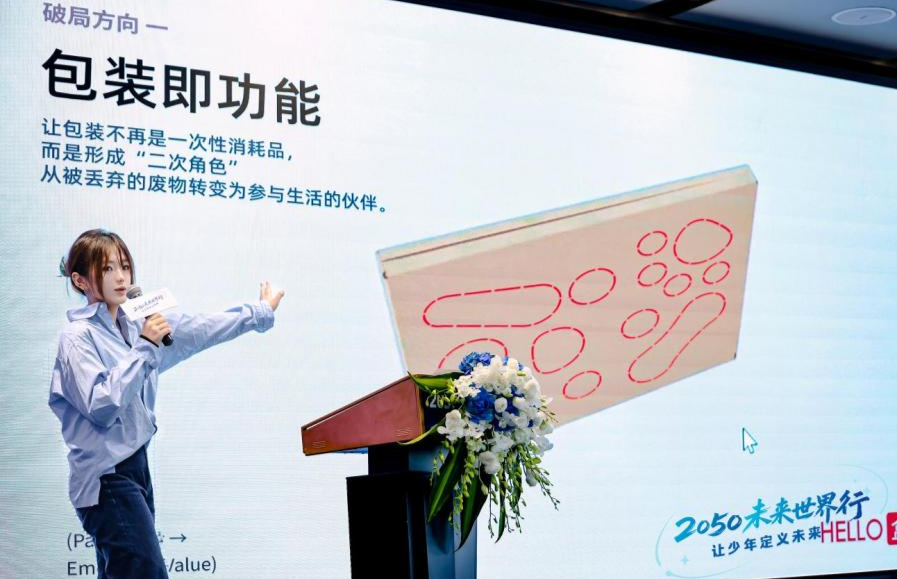 学校设计艺术学院2025级美术与书法专业研究生王润、胡钰楠,2023级视觉传达设计专业本科生李佳宸,联合印刷与包装工程学院2023级包装工程专业本科生廖缘缘、2024级包装工程专业本科生高绅皓,组成跨学科创新团队,围绕“以AI赋能传统产品升级”的命题,以收纳箱产品包装为研究对象,提出了面向“可进化生活方式”的系统化创新方案。团队凭借跨学科洞察、深入的用户研究和AI辅助设计方法,用逻辑严谨、构想缜密的方案赢得了评委与观众的认可,最终从众多强劲对手中脱颖而出,以全场最高票数荣获最佳团队金奖。