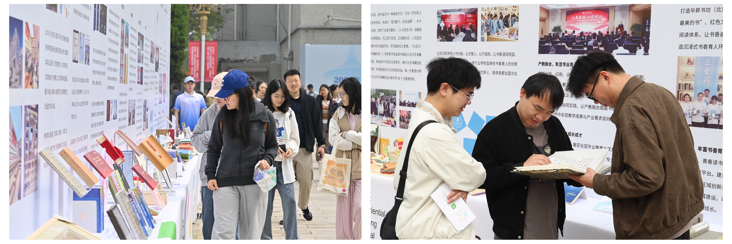 “融届共生”街区融合校地企优质资源,汇聚出版类企业,展示并售卖其特色读物、精品出版物,让好书触手可及。“书林如晤”街区集中展陈畅销书、经典文学作品及“中国最美的书”获奖作品,吸引读者驻足阅读。“旧书新知”二手书活动开展闲置图书交换、学生寄卖、旧书换绿植等活动,倡导低碳阅读理念。“匠心书韵”街区将传统技艺与现代科技相融合。活版印刷、藏书票制作、线装书装帧等活动,让参与者零距离触摸传统印刷工艺,更有学生原创手作专属定制等互动项目, 尽显青春匠心与创意活力。
