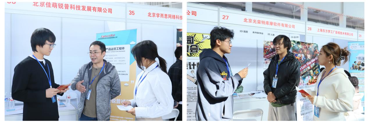 不少低年级学生也来到双选会现场,通过投递实习简历、与企业代表交流,提前了解行业趋势与岗位要求。新闻传播学院大一学生黄同学表示:“通过与企业负责人的交流,我更清晰未来需要提升哪些专业技能。”