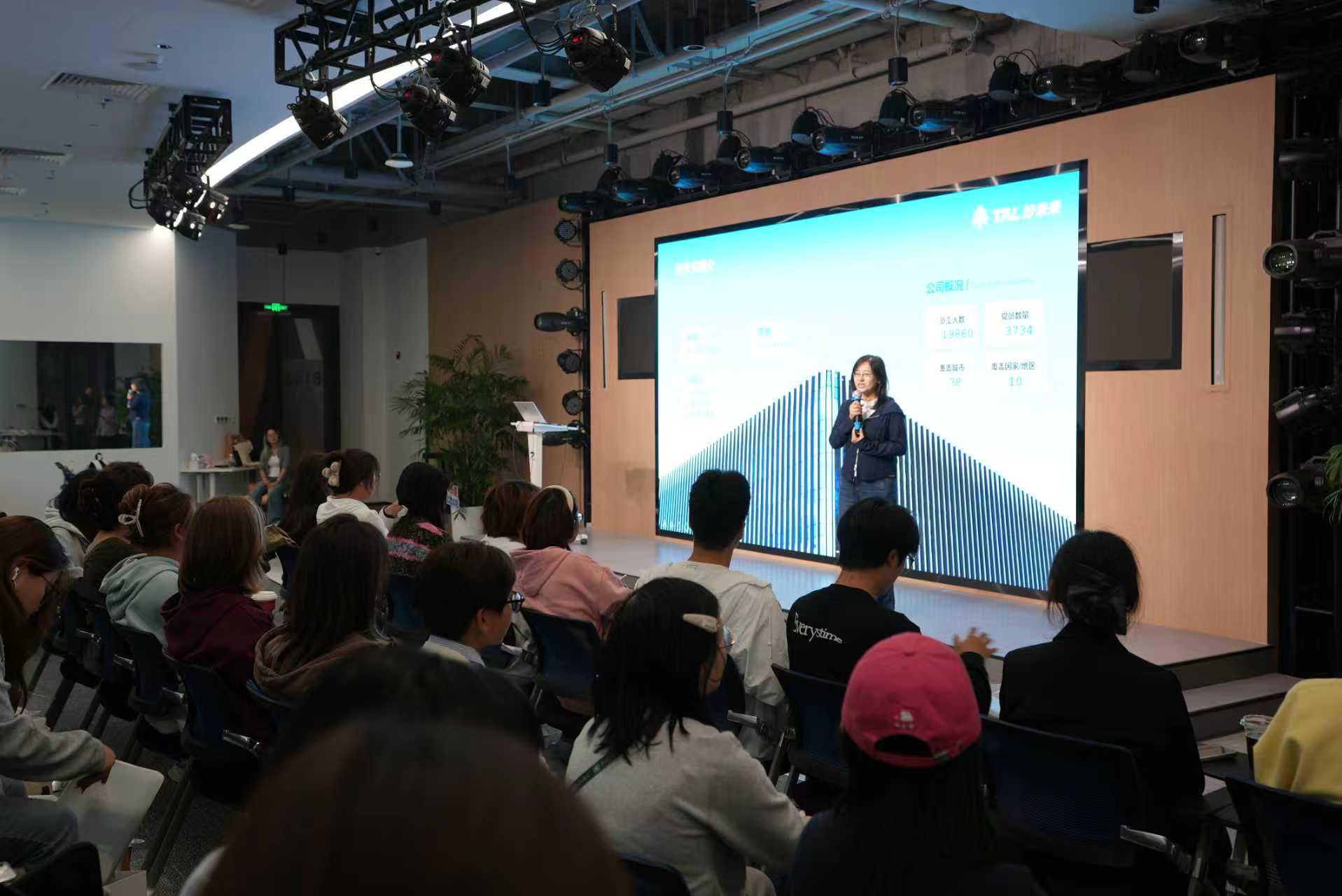 同学们在好未来工作人员的引导下,参观了AI展厅与智慧书房,穿梭于现代化的办公空间与技术应用场景中,切身感受教育与前沿科技融合的氛围,对好未来的业务布局与发展历程有了更为直观的认识。