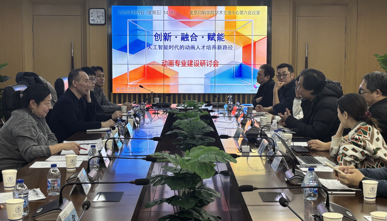 为主动适配人工智能技术对动画行业的深刻影响,破解新时代动画人才培养的核心命题,1月9日,新媒体学院动画系举办“创新·融合·赋能——人工智能时代的动画人才培养新路径”学术研讨会。来自国内动画教育领域的知名专家,北京邮电大学世纪学院艺术与传媒学院副院长陈薇、黄淮学院动画学院副院长邓江洪、中央美术学院城市设计学院党委副书记苏海江、青岛科技大学影视与动画系主任陈墨白教授、湖南师范大学工程与设计学院沈竹副教授以及行业嘉宾北京国际电影节游戏·动漫·电影单元策展人左鹏,学校教务处处长孙志成,新媒体学院党委书记赵欣、副院长袁园以及动画系系主任白英伯、专业负责人刘锋教授和动画系全体教师齐聚一堂,共话动画教育创新发展,共绘人才培养未来蓝图。