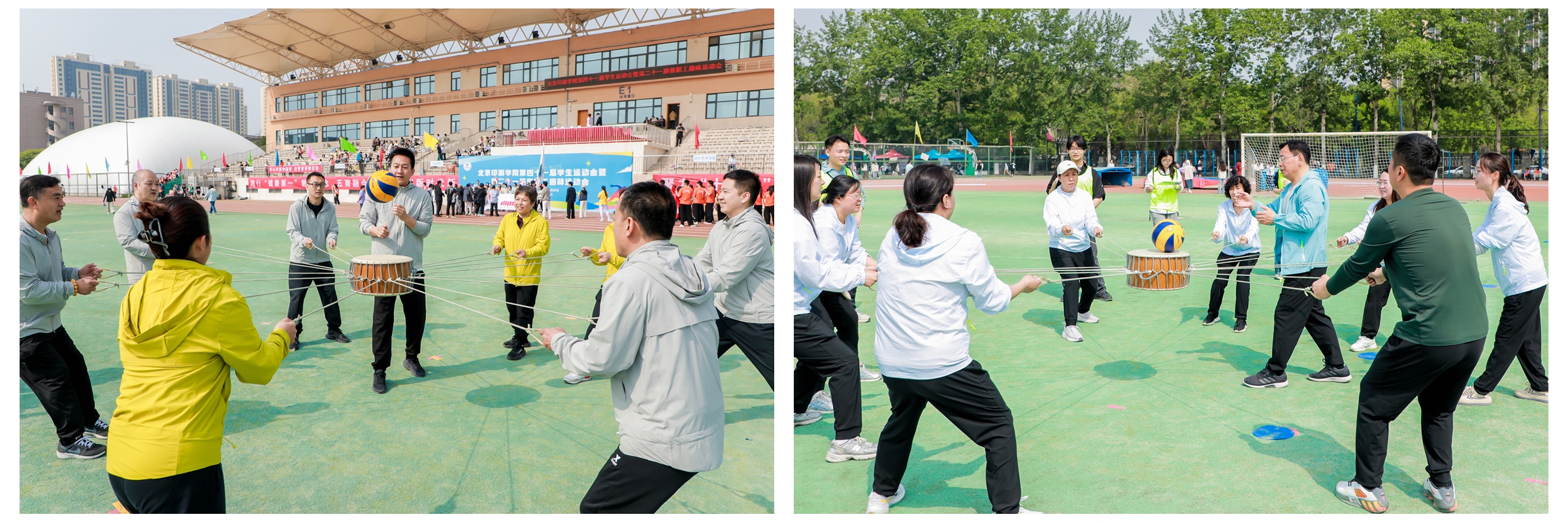 4月22日、24日,北京印刷学院第二十一届教职工趣味运动会在校本部体育场举行,个人项目包括实心球掷远、立定跳远、4×25米折返跑,集体项目包括“疯狂毛毛虫”“击鼓颠球”“8字长绳”,数百名教职工参与活动。