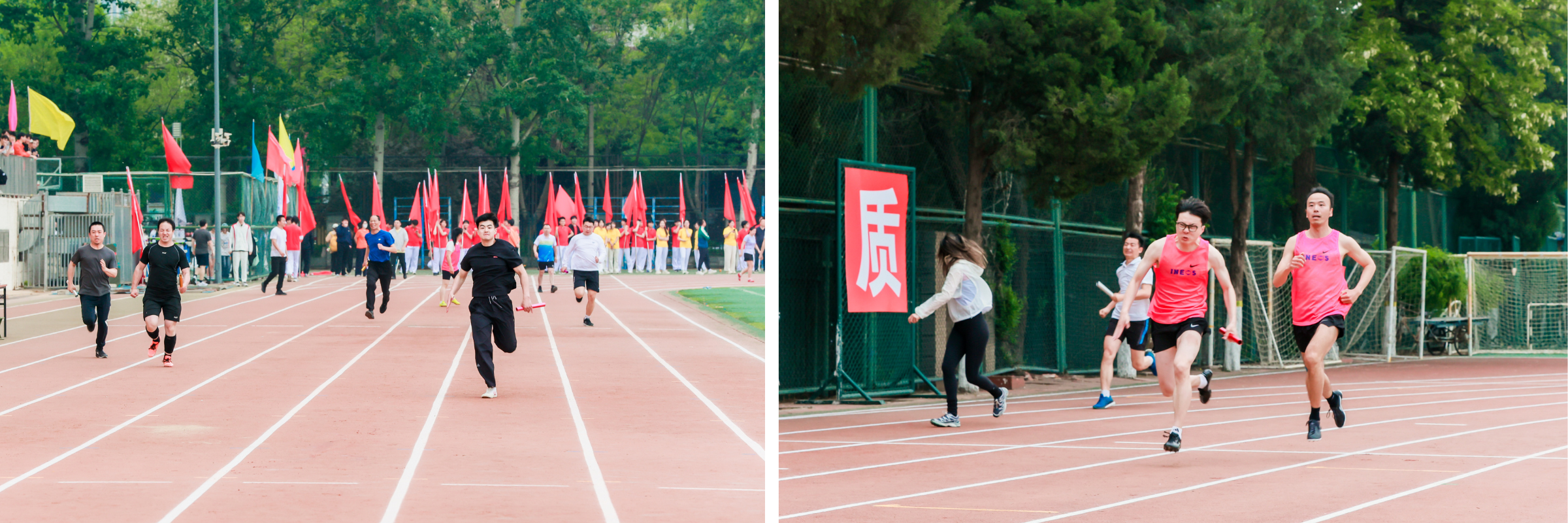 压轴的4×100米接力赛将运动会推向高潮。跑道旁同学的加油呐喊与赛场上老师的步履如飞交织,定格热血激昂的赛场瞬间。