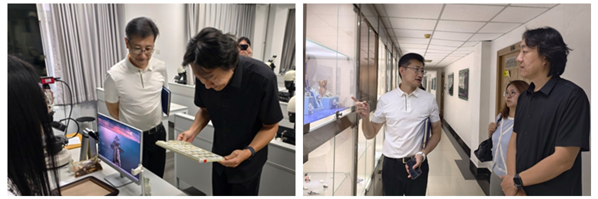 会后一行人与学校2025级正在中国地质大学(北京)珠宝学院进行学习的产品设计(首饰设计方向)双培学生见面交流,并参观了珠宝学院特色实验室。