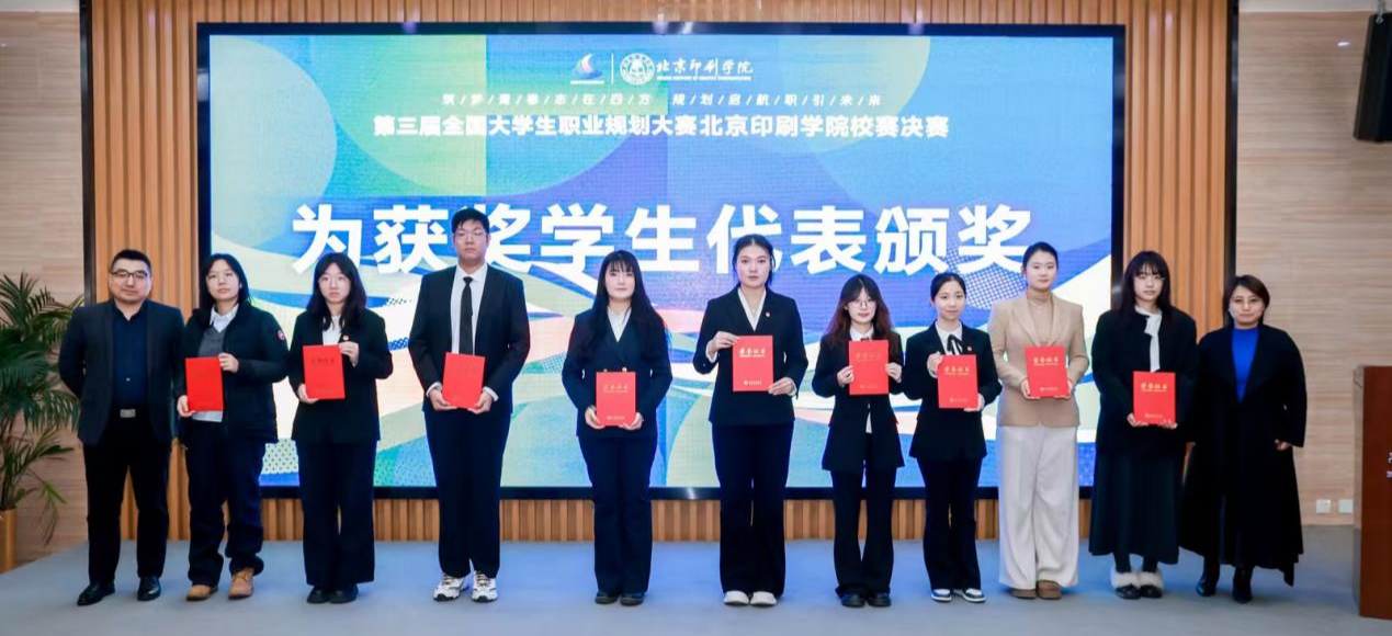 为深入贯彻党中央、国务院关于促进高质量充分就业的决策部署,落实2026届全国普通高校毕业生就业创业工作会议精神,12月22日,学校以“筑梦青春志在四方 规划启航职引未来”为主题在新创大厦学术交流中心举行第三届全国大学生职业规划大赛校赛决赛。学校党委副书记白莽,党委常委、副院长刘益,研究生院、教务处、学工部相关负责人,各二级学院负责人、辅导员、获奖学生以及北京金印联国际供应链管理有限公司、南海出版公司、北京人形机器人创新中心有限公司、北京盛通印刷股份有限公司、北京国人通教育科技有限公司、北京三月雨文化传播有限责任公司、优包(北京)科技有限公司等企业评委参加活动。决赛赛前动员和颁奖仪式由学工部部长朱磊主持。