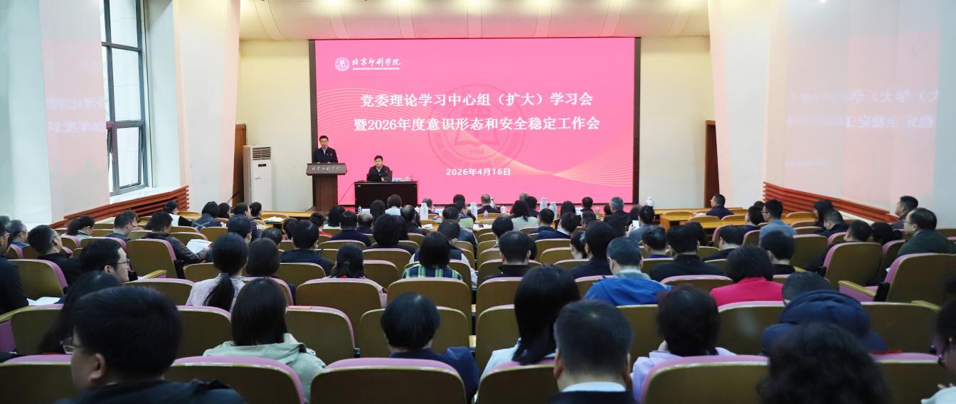 4月16日,学校党委理论学习中心组(扩大)学习会暨2026年度意识形态和安全稳定工作会在综合楼会议厅召开,会议结合第十一个全民国家安全教育日学习要求,深入学习贯彻习近平总书记关于总体国家安全观、意识形态工作和保密工作的重要论述,总结2025年相关工作成效,部署2026年重点任务,统筹发展与安全,为学校“十五五”事业高质量发展筑牢安全屏障。全体校领导、处级干部、五/六级职员、基层党支部书记参加学习会,会议由党委常委、副院长刘尊忠主持。