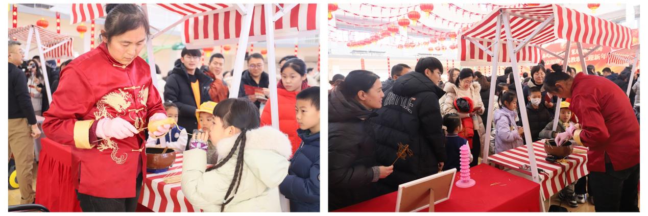 在传统游戏区,投壶、套圈、击铜钱、捶丸体验、投掷乒乓等5项经典游戏,让教职工在欢笑声中舒展身心,感受传统文化的独特魅力。在非遗体验区,糖画塑形、吹糖奇观、冰糖葫芦DIY、拓印年画、巧捏面人等5项非遗技艺互动体验,让教职工在“甜蜜印记”与“巧手塑年”中,亲手打造专属快乐,感受匠心独运。在新春送福区,现场挥毫泼墨,为教职工送上饱含美好祝愿的新春福字和对联,传递节日温暖。