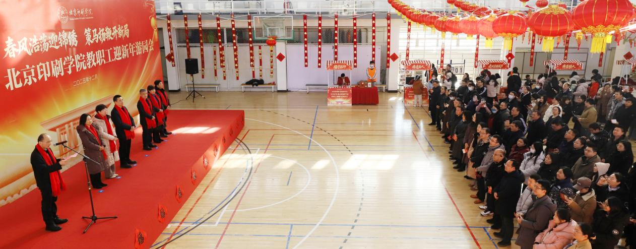 岁序更替,华章日新。12月31日下午,学校主校区体育馆内欢声笑语、喜气洋洋,“春风浩荡迎锦绣 策马扬鞭开新局”2026年北京印刷学院教职工迎新年游园会在此举办。全体在校校领导与教职工们欢聚一堂,通过沉浸式非遗体验与趣味游艺活动,共同迎接充满希望的2026年。
