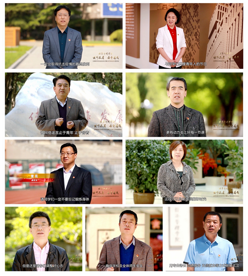 活动伊始,全体在校值守的校领导通过视频寄语青年,希望同学们坚定不移地与以习近平同志为核心的党中央同心同路,以实现中华民族伟大复兴为己任,以“使命在肩 奋斗有我”的主人翁姿态,继续发扬五四精神,做具有远大理想和坚定信念的爱国者,做具有责任意识和创新精神的建设者,做具有过硬本领和高尚品格的接班人,利用好返校前这段时间为自己“充电”,坚定信心,保持定力,相信在疫情过后,青年人将接过时代的重任,用实际行动证明新时代中国青年的责任担当,在实践与奋斗中书写时代的青春答卷。