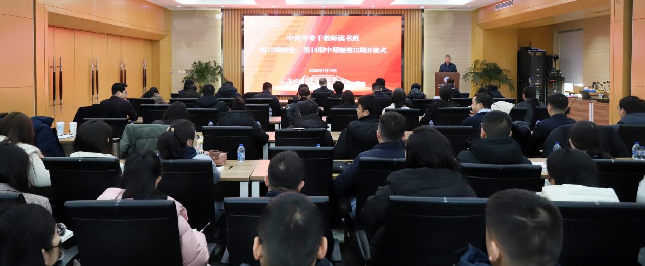 1月15日,学校中青年骨干教师读书班第13期结业、第14期中期汇报暨第15期开班仪式在学术交流中心第七会议室举行。学校党委书记张鑫出席并作“开班第一讲”,党委常委、组织部部长、统战部部长王晓林,组织部(党校)、教师工作部(人才办、人事处)相关负责同志、各院系级党组织书记以及第13、14、15期中青班学员参加。会议由党委副书记白莽主持。