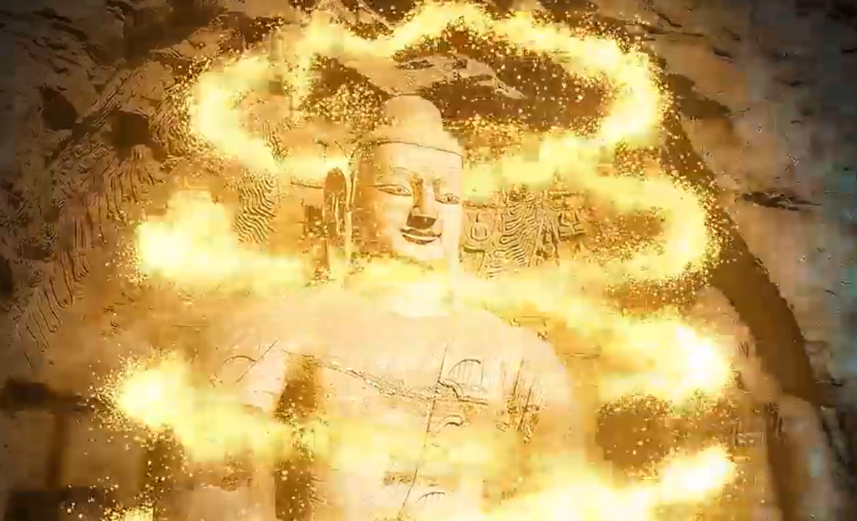 二维动画制作为影片铺陈了极具历史厚度的序章,通过细腻的二维剪影与动态粒子特效,生动重现了北魏工匠开窟的震撼瞬间。伴随着清脆的凿击声,金色的火星在巴黎百年建筑的窗棂间飞溅,石匠剪影在光影交错中挥舞凿子,仿佛在剔除岁月的尘埃,让佛像的轮廓从法式建筑的肌理中隐约浮现。这不仅在视觉上制造了强烈的时空错位感,更以无形之凿刻画出文明的初生,成功拉开了这场跨越1500年对话的恢宏序幕。正是这些艺术与科技深度融合的尝试,为这场跨越千年的文明对话注入了深厚的文化灵魂,实现了传统韵味与现代审美的和谐共振。